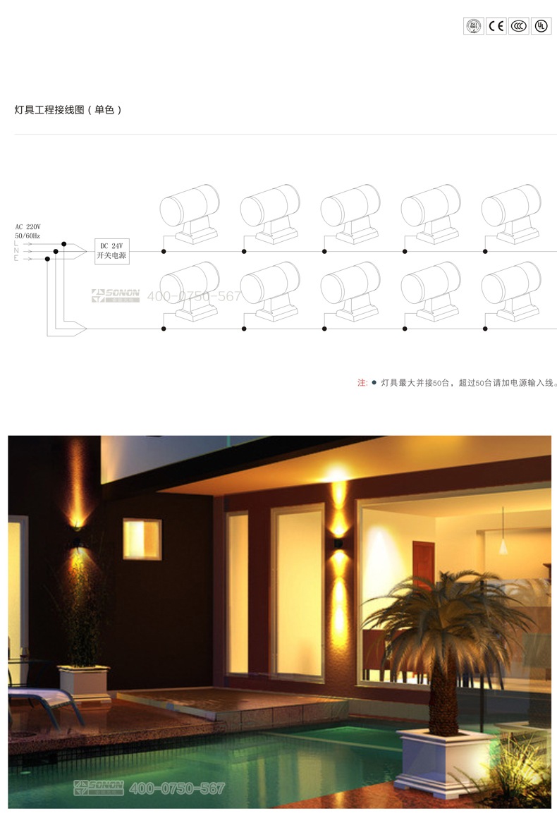 l注:灯具最大并接50台,超过50台请加电源输入线。