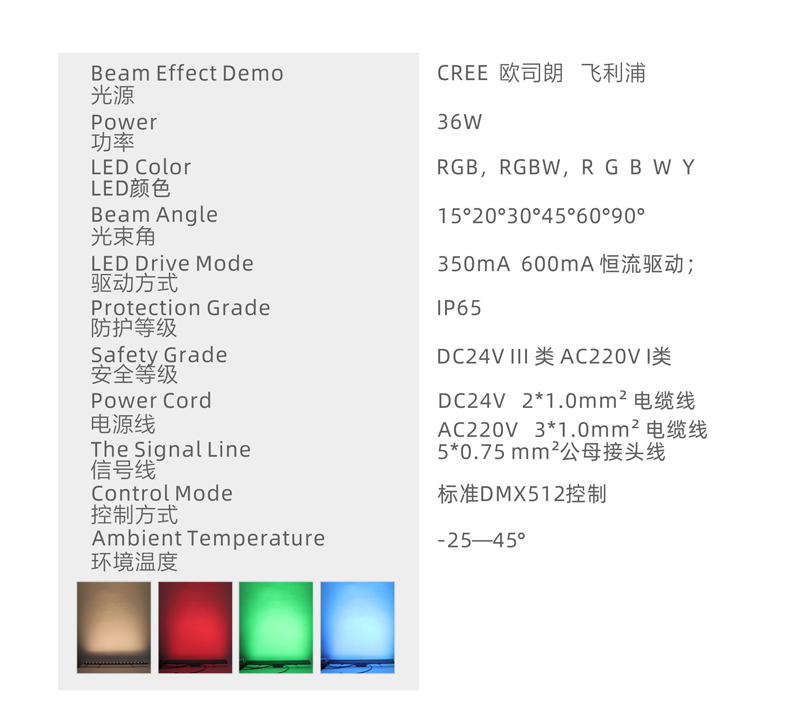 2、每台DMX512控制器 可控制不超过170台独立地址的灯;