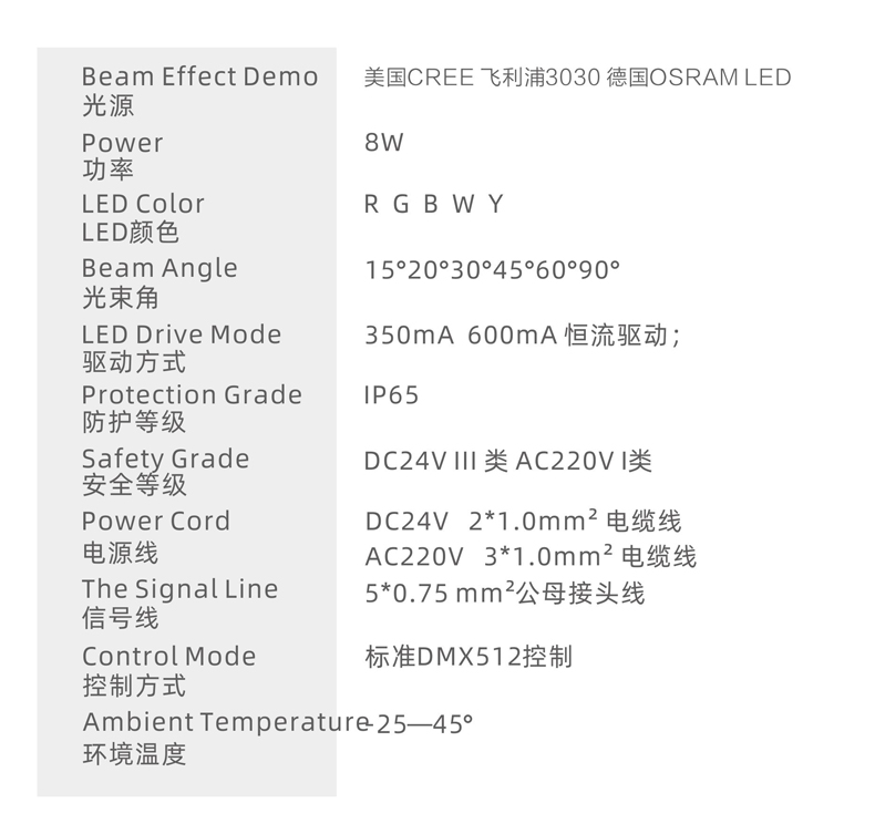 2、灯具AC220V并接不超过20台,超过20台请加电源输入线。