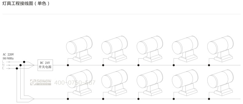 l注:灯具最大并接50台,超过50台请加电源输入线。