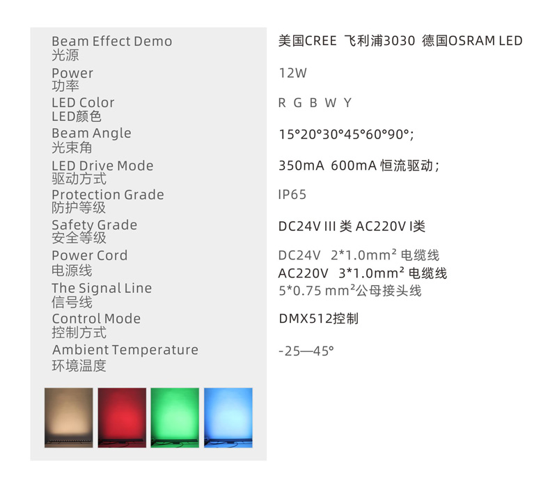 光源:美国CREE 飞利浦3030 德国OSRAM LED