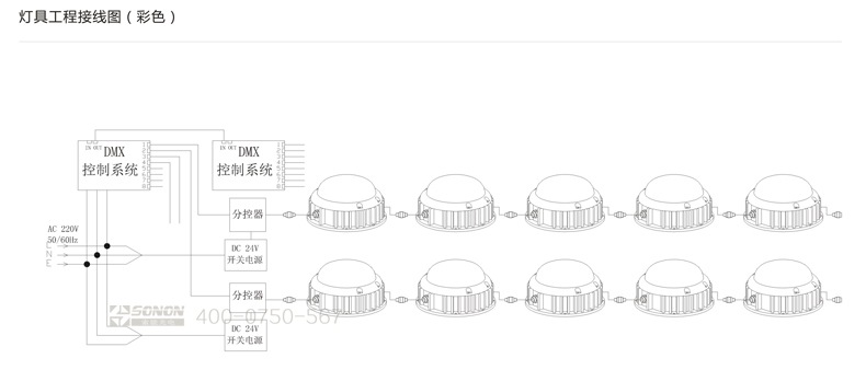 l灯具DC24V最大串接50/30/20台,超过50/30/20台请加电源输入线。