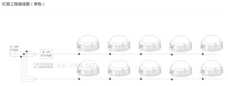 l灯具最大串接50/30/20台,超过50/30/20台请增加电源输入线。